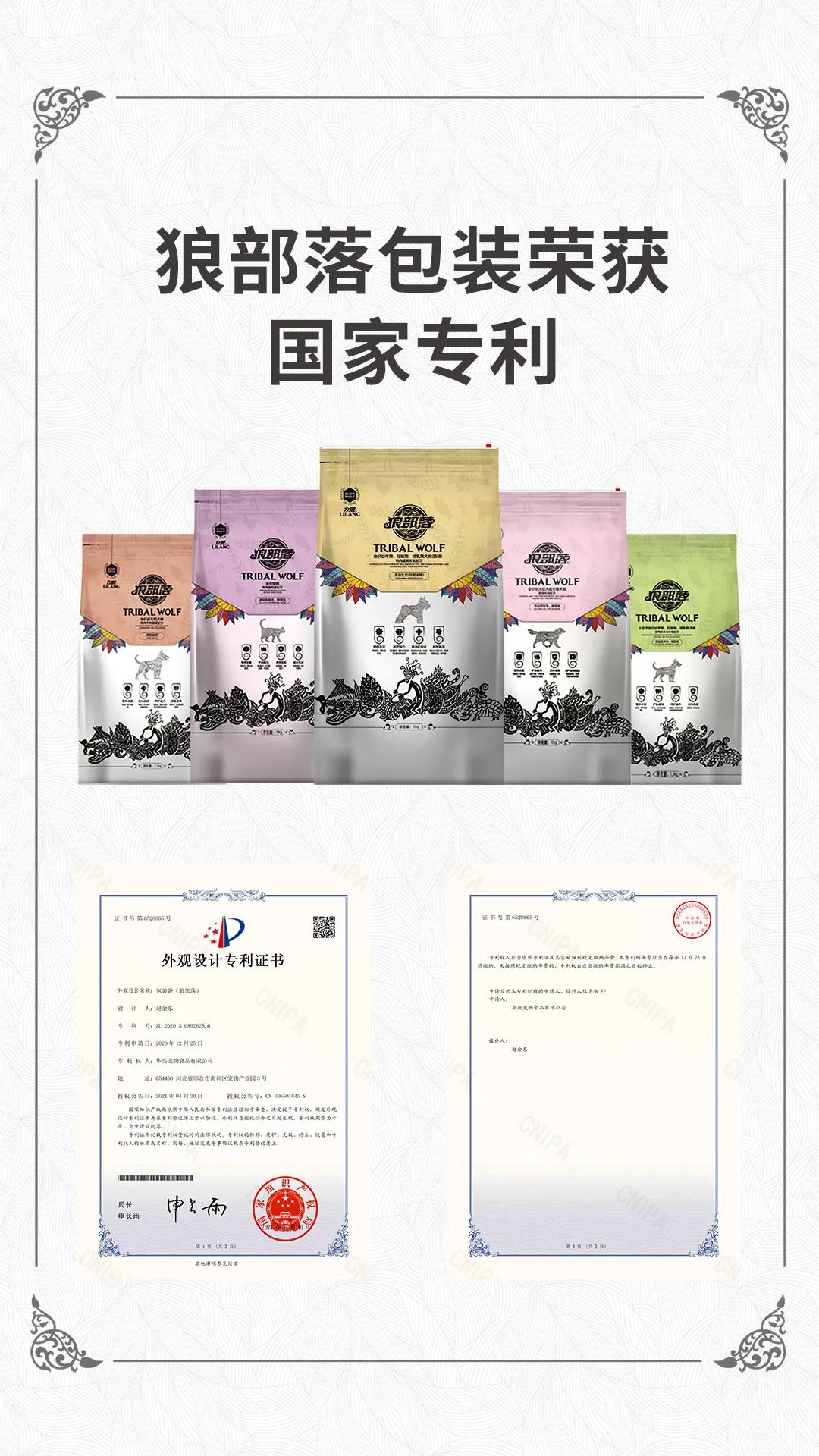 近日,國(guó)家知識(shí)產(chǎn)權(quán)局經(jīng)過初步審查,力狼狼部落包裝袋外觀設(shè)計(jì)被授予專利權(quán),頒發(fā)外觀設(shè)計(jì)專利證書,專利號(hào):ZL 2020 3 0802625.6,并在專利登記薄予以登記。